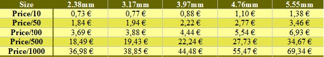 SIZES 3/8,11/32, 5/16, 9/32, I/4, 7/32, 3/16, 5/32, 1/8, 3/32.